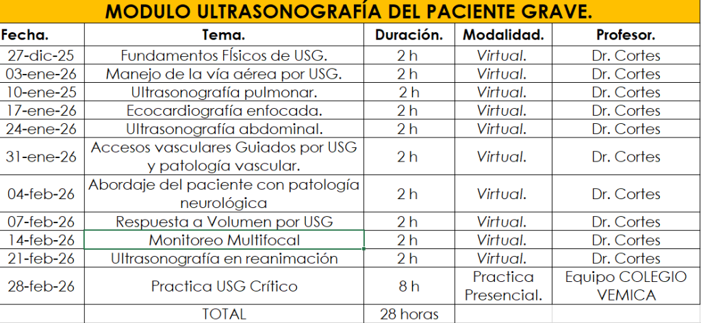 Curso de Ultrasonografía aplicada al paciente grave. Abarca una introducción al universo de la ultrasonografía crítica. Para la identificación de trastornos a la cabecera del paciente.
